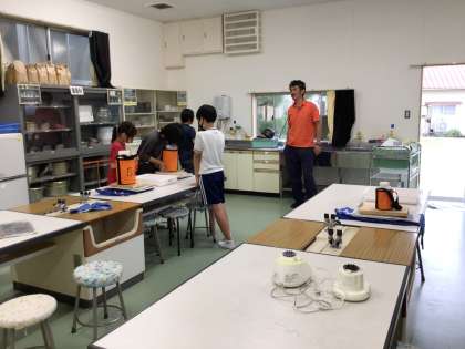 ミキサーで細かくした牛乳パックを型に流し込んでいました。