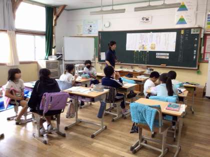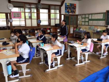 題名の意味については、座席の近くの友だちと意見交換をしていました。