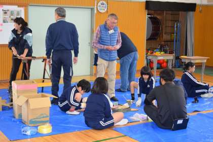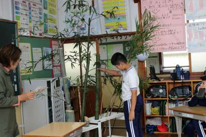 地域交流会2 公開日 2025/10/23 更新日 2025/10/23 学校の特色ある活動 1・2年生は昔遊び、3・4年生は竹細工、5年生は持続可能な資源(竹の活用)6年生は、鈴木正三を英語で紹介することをテーマに行いました。 5年 6年