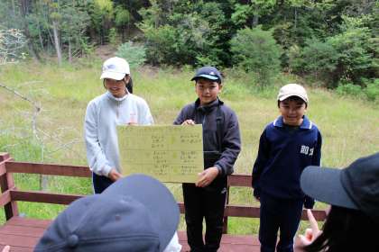 本日は、5年生が三校(則定小、上鷹見小、矢並小)交流学習で恩心寺湿地について、今まで調べたことを紹介しました。三校の中で最初の発表校ということで緊張しましたが、発表前にみんなで気合いを入れて臨みました。