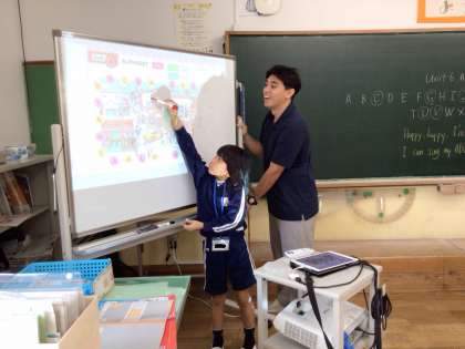 教科書の挿し絵の中から、アルファベットの文字を探していました。