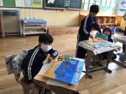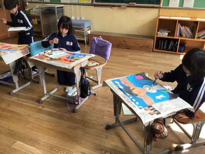 物語を読んで感じたことや想像したことから、表したいことを見つけ、描いていました。
