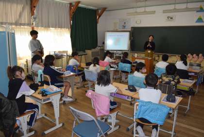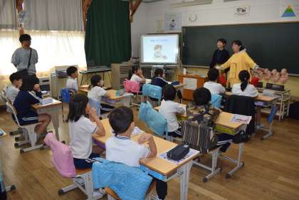 市役所の「おやこ応援課」より講師を招き、妊婦体験や年齢とともに変化する体について学びました。