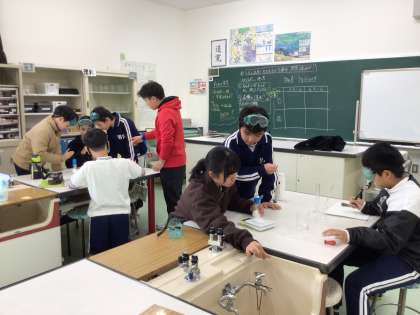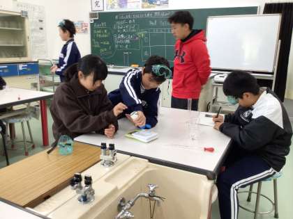 食塩とミョウバンを少量ずつ溶かしながら調べていました。