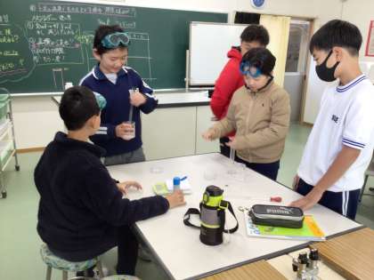 物が水に溶ける量には限りがあるか、実験をしていました。
