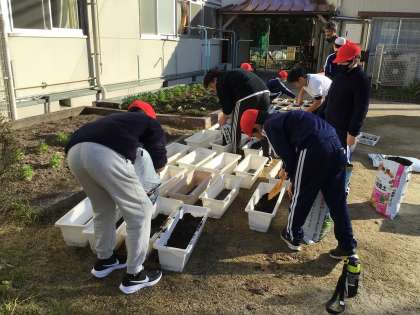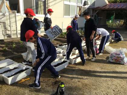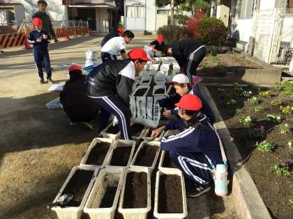 5年生が全校に呼びかけて、みんなで花を育てていきます。