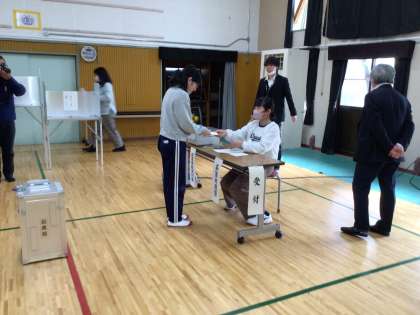 模擬投票所を集会室につくり、豊田市長選挙を行いました。