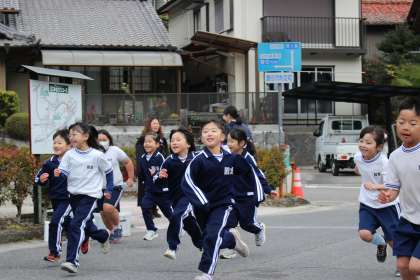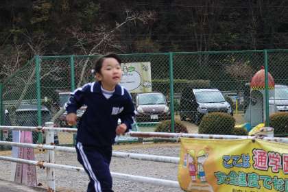 低学年はマラソンコースを2周走ります。