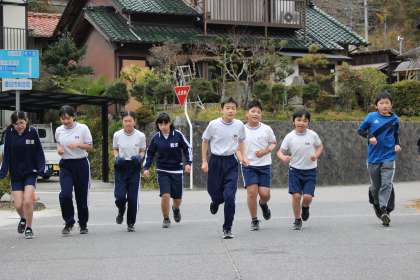 高学年はマラソンコースを4周走ります。