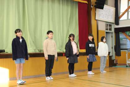 4年生 全校集会(スピーチ) 公開日 2025/12/08 更新日 2025/12/08 各学年から 本日は、全校集会で4年生のスピーチがありました。「聞いてほしい、こんな出来事」をテーマに全校の前で話しました。友達に助けてもらったことやお母さんにアドバイスをもらったことなど様々な話題を話してくれました。 4年