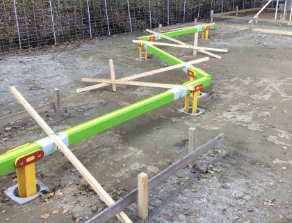 雲梯、平均台、登り棒です。今までの遊具が新しくなったり、新たなものが増えたりします。子どもたちが使えるまではまだ少し時間がかかりますが、楽しみにしていてください。1月中旬には使える予定です。