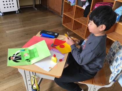 飛び出す仕組みを使ったカードを作っていました。