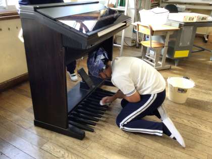 早速、教室内の汚れているところや整頓が行き届いていないところを見つけて、手分けして掃除をしていました。