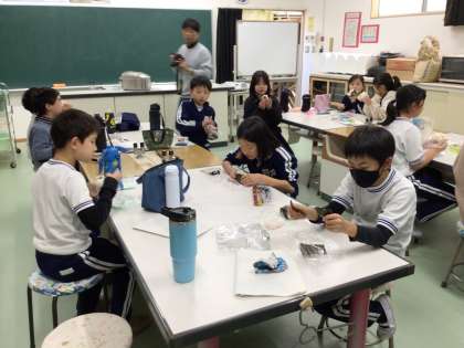 各自で用意した具材を入れて、思い思いのおにぎりを味わっていました。