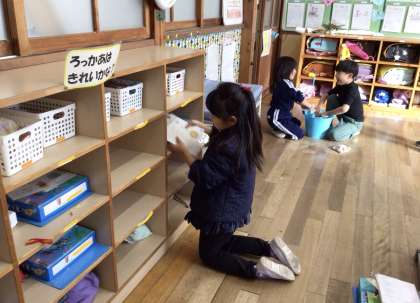 普段はやれない黒板の下や、ロッカー内の整頓もしました。