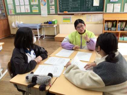 アンケート用紙に目を通し、全校児童の思いがこもったものにしようと話し合っていました。
