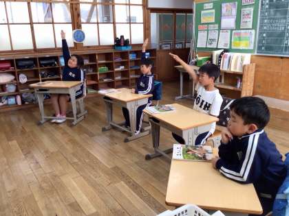「きまりのない学校」というお話を使って、規則の尊重について考えていました。