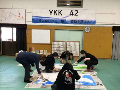 今年の学芸会テーマの下で作業をしてくださっているところを写真に収めました。