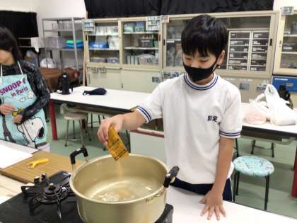 畑で育ててきた大根を収穫し、おでんを作っていました。