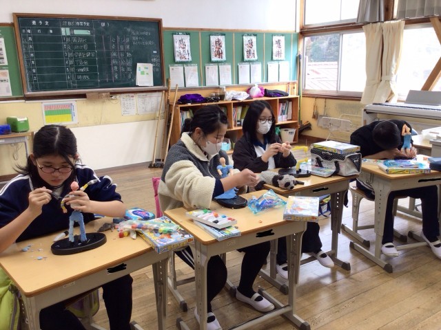 心棒で体の動きを作り、紙粘土で肉付けし、「未来のわたし」を作っていました。
