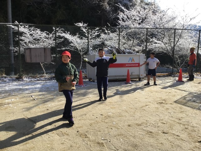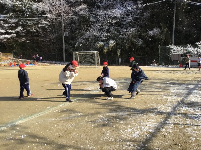 それでも運動場では1年生と5年生が一緒に雪遊びを楽しんでいました。