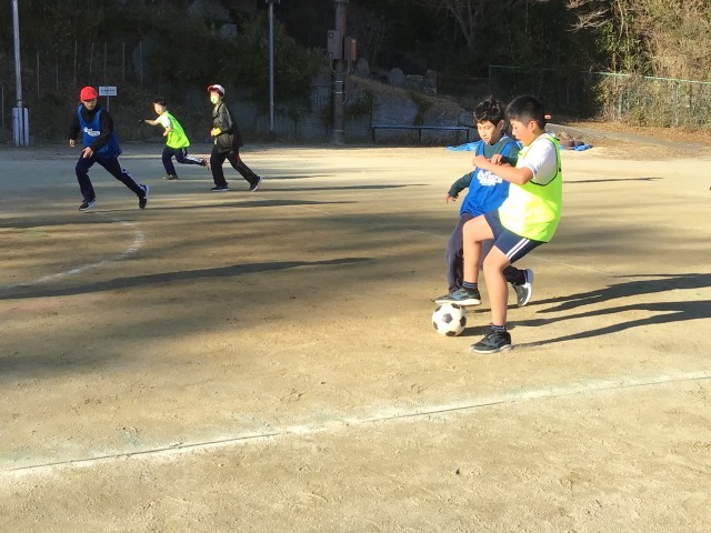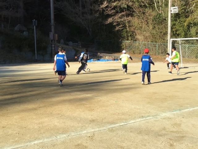 運動場でサッカーをしていました。