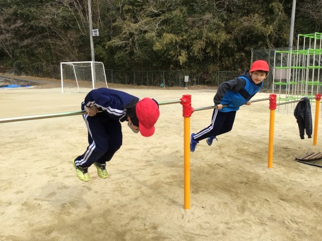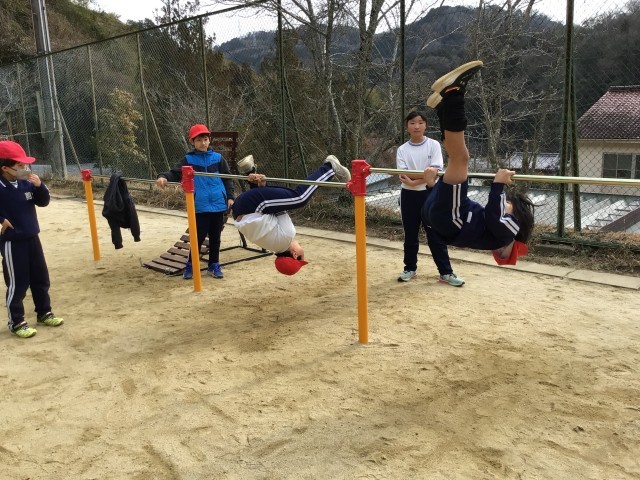上がり技や回り技、下り技に挑戦し、熱心に練習していました。