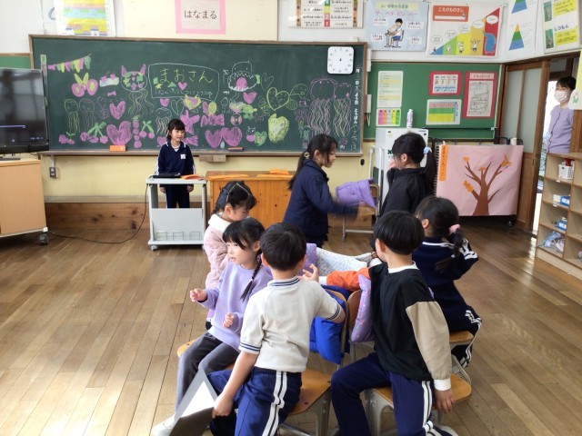 園児さんのお世話を甲斐甲斐しくする1年生が、とても立派に見えました。