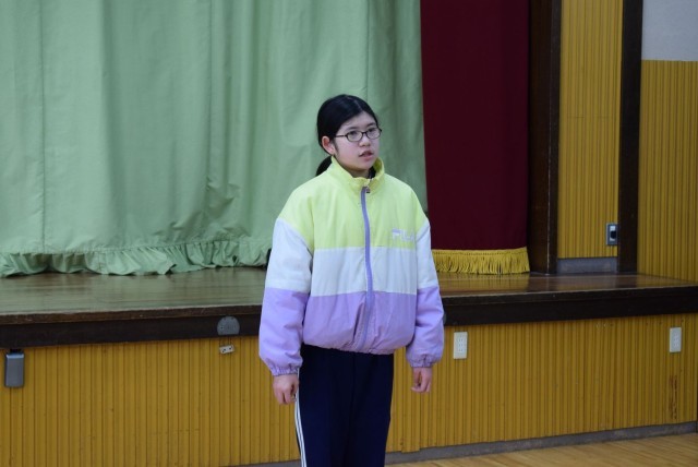 今日は、朝のスピーチ集会で6年生の2名が話しました。テーマは、「自分の成長を振り返って」でした。1人目は修学旅行での自分の成長について話しました。英語が苦手な自分が一生懸命練習し、外国の方に鈴木正三のことを広める挑戦をしたことを振り返りました。2人目は、6年生として迎えた運動会でリーダーとしてのプレッシャーや不安に立ち向かった話でした。自分の伝えたいことを具体的に聞いているみんながわかるように話す6年生はさすがです。