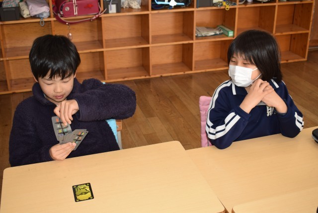 自分の持ち札を相手に見破られないように、ポーカーフェイスの3年生です。