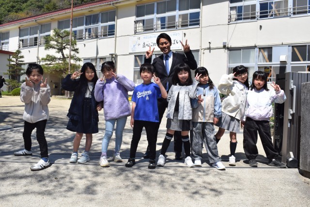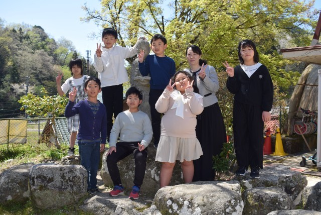 学級ごとに撮影場所を決めて、ハイポーズ!