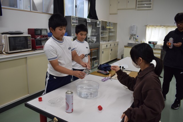ろうそくが燃えるために必要な気体を調べる実験に取り組んでいました。