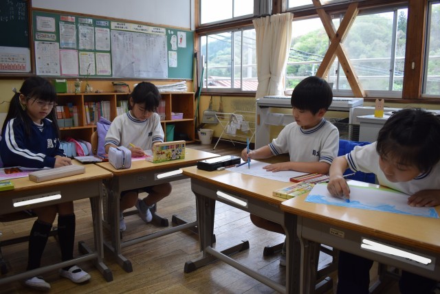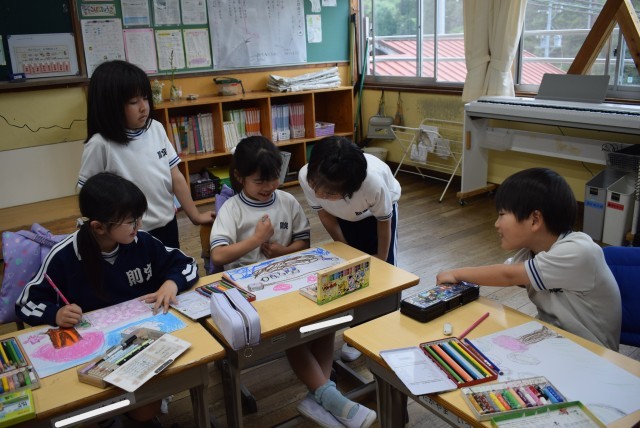 季節を感じるものをイメージして、思い思いに絵に表していました。