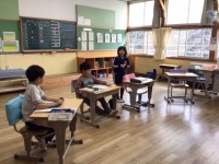 こども園の年長さんが、授業の様子を見に来ました。こども園と小学校の一番大きな違い...