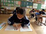 10月28日(金)、学芸会に向けての思いをまとめている5年生です。真剣な顔つき...
