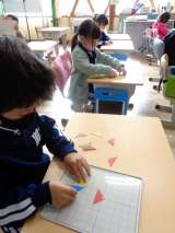 10月31日(月)、1年生はかたちづくりの学習を頑張っています。見本の通りに、...