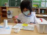 楽しそうに、絵の具をつかっていました。 トイレットペーパーの芯に切り込みを入れ...