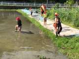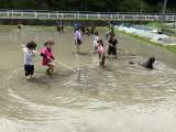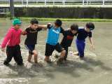 田植え前の田んぼに入ってみました。 最初は、濁った水や泥の感触におそるおそるとい...