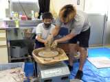 地域講師を招いて、陶芸教室を開きました。 6年生はまず、思い思いのランプシェード...