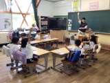 今朝、かぼちゃの苗を畑に植えました。1、2年生でしっかりお世話をして夏休み明けに...