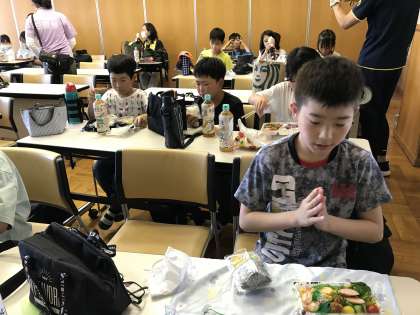 オリエンテーリングが終わり、お弁当の時間です。