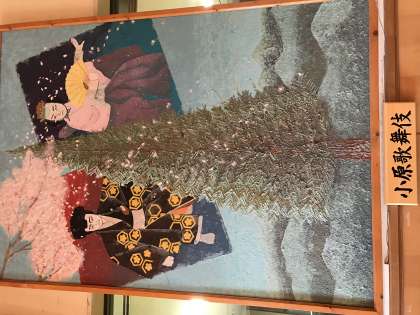 旭高原自然の家のロビーには小原中学校の生徒が作成した和紙作品が展示されています。