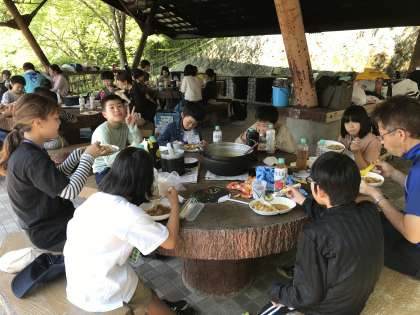 今日のお昼ごはんはカレーです。自分たちで作ったカレーは格別ですね。