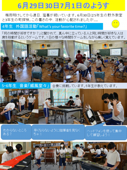 6月29日・30日と7月1日の学校のようすをお知らせします。