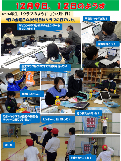 12月9日と12日のようすをお知らせします。