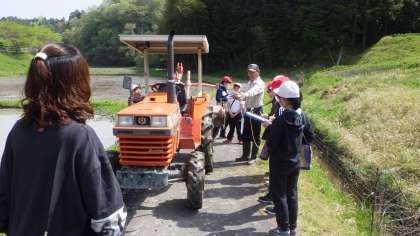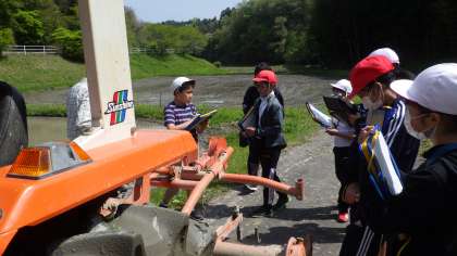 4月21日の2時間目に5年生が代かきの見学に行き、地域の方にお話を聞きました。