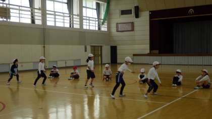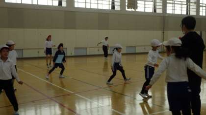 反復横跳びの練習です。横に動くのはなかなか難しいですね。