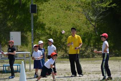 6年生手作りの道具「ジャイロ」を使って、投げる運動を楽しみました。