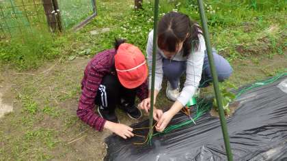キュウリにネットを付けたり、水をやったり…これからが大変ですが、頑張ってお世話をしていきます。