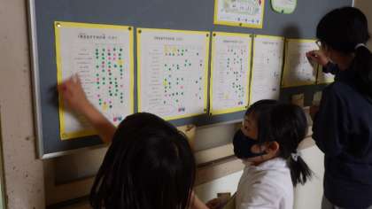 図書館では、借りた本の表にシールを貼っていました。「全部シールがはれた!」と満足気な様子の子もいました。